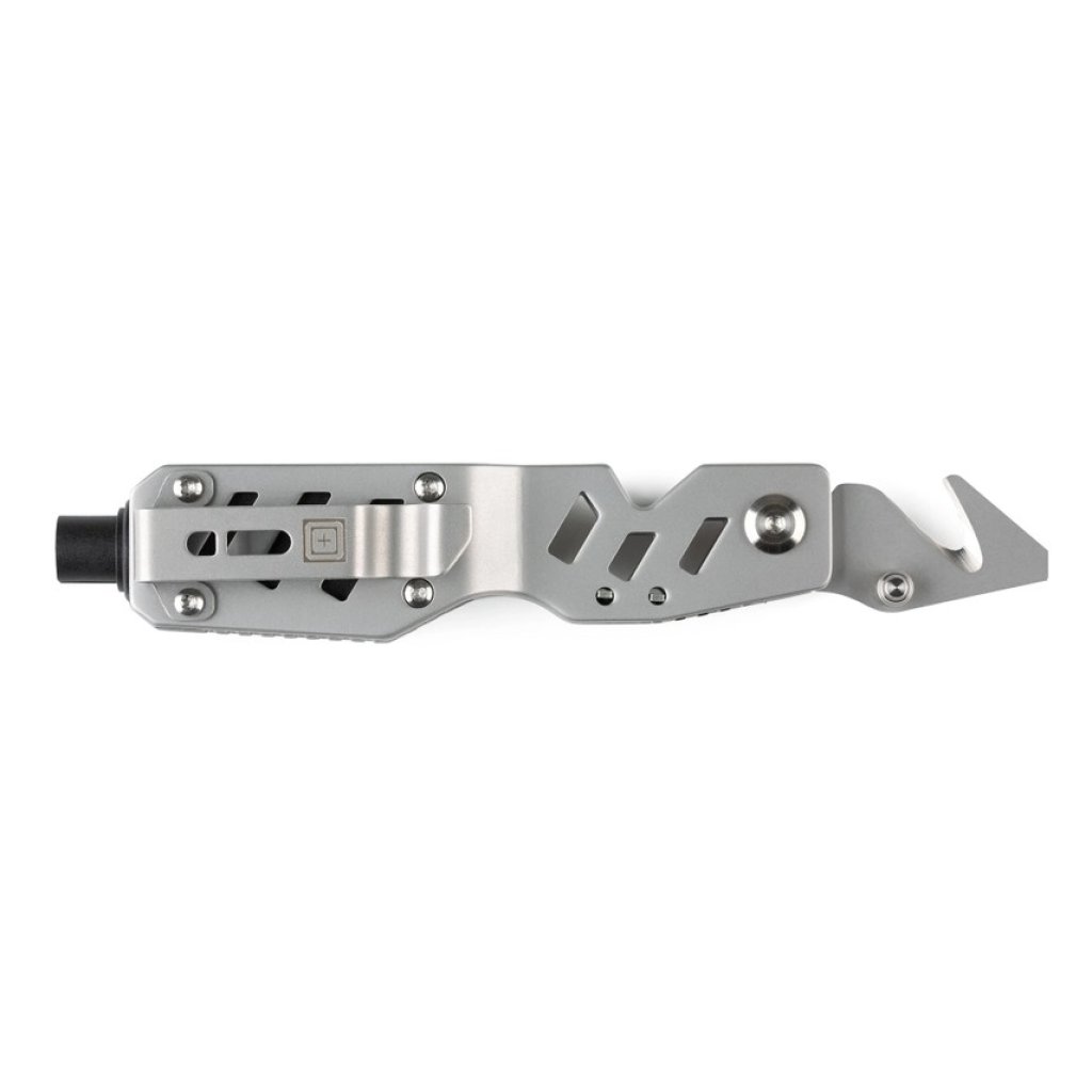 - Belt cutter features stainless steel blade with pry tip and dual thumb stud for easy opening